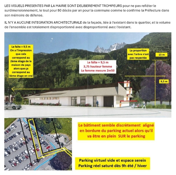 ACTUALITE JANVIER 2026 Trois requêtes ont été déposées au nom de la Association et au nom de Sophie Persyn comme citoyenne, au Tribunal Administratif de Grenoble. 1) Contre l'autorisation de la Préfecture de construire le funérarium, basée sur des documents fournis par la Mairie dans le dossier d'Enquête Publique et qui ne correspondent pas à la réalité des faits. 2) Contre la délibération du Conseil Municipal qui permet le déclassement du Parking du Biollay pour y construire le funérarium, après une enquête publique dont les résultats ont été manipulés pour laisser croire à une équivalence d'avis POUR et CONTRE alors que les avis CONTRE étaient deux fois plus nombreux que les POUR. 3) Contre le permis de construire Ces trois requêtes sont en cours, et malgré cela, la Mairie a commencé à abattre plusieurs des superbes épicéas de plus de 60 ans qui protègent le quartier de l'agitation touristique, de la pollution de l'air et de la nuisance sonore qui règnent à l'entrée du quartier. Quelques images ci dessous: ![]() Le funérarium sera plus ou moins placé à la place du manège d'auto-tamponneuses de la fête foraine de septembre et 50% plus volumineux ![]() 50 places de stationnement disparaissent sans contre partie ![]() Le rond-point du plan censé résoudre les problèmes de circulation inhérents au quartier casi toute l'année, est FICTIF. Aucun service du département, obligatoirement partie prenante d'une rond-point sur une route départementale, même sur le territoire d'une commune n'est impliqué dans un projet de rond-point à cet endroit. ![]() Abattage totalement inutile des arbres sans attendre la décision du Tribunal ![]() ![]() ENQUETE PUBLIQUE TERMINEE ACTUALITE DEC 2024 N°1: ENQUETE PUBLIQUE TERMINEE L'enquête publique pour la désaffectation et le déclassement partiel du parking (-50 places) et du chemin du Biollay EN VUE D'Y CONSTRUIRE UN FUNERARIUM du Mardi 19 Novembre au Mardi 3 Décembre 2024 est terminée. Le Rapport du Commissaire Enquêteur sera rendu public dès que le Compte rendu du Conseil Municipal du 8 Janvier 2025 sera signé par le Maire de Chamonix. Voici en attendant les principaux éléments que nous avons pu consulter en Mairie et recopier: Le Commissaire rappelle le contexte, le cadre juridique, les données cadastrales, les données concernant le déclassement, la raison du déclassement = le projet de construction d'un funérarium de 700m2, décrit les modalités de l'enquête et souligne le respect de la procédure. Il liste les participations citoyennes: EN FAVEUR DU DECLASSEMENT: 25 dépositions sur le registre nominatives 4 dépositions sur le registre sans identification possible 2 courriers annexés 24 envois par email ARGUMENTS: Le Projet Funérarium répond à une demande Utilité d'un lieu d'accueil digne pour les familles Cohérence de la proximité du cimetière Dimensionnement correspondant aux besoins Suppression de places compensé par quelques nouvelles places dans les espaces libres et le développement des transports en commun Pas de commentaires du Commissaire CONTRE LE DECLASSEMENT: 28 dépositions sur le registre nominatives 1 déposition sur le registre sans identification possible 1 courrier annexé 28 envois par email ARGUMENTS: Le lieu n'est pas approprié Pertes de places de stationnement Non respect du PPRA (Remarque: erreur car projet 2024 en bord limite PPRA) Grandiose et surdimensionné Manque d'intégration architecturale Proposition de rénovation Hôpital Impact des travaux sur les riverains Nécessité d'une réflexion globale de l'aménagement du secteur Commentaires du Commissaire: Seuls les 3 premiers arguments concernent directement l'objet de l'Enquête L'implantation près du cimetière ne paraît pas incohérent Les pertes de places de stationnement sont le point négatif mais la perte sera compensée par des places sur les espaces libres et le développement des transports en commun Les autres arguments relèvent du Permis de Construire. La plupart des CONTRE ne contestent pas l'utilité du funérarium ni le lieu mais surtout le dimensionnement CONCLUSION du COMMISSAIRE sur l'objet de l'enquête (Déclassement) AVIS FAVORABLE |